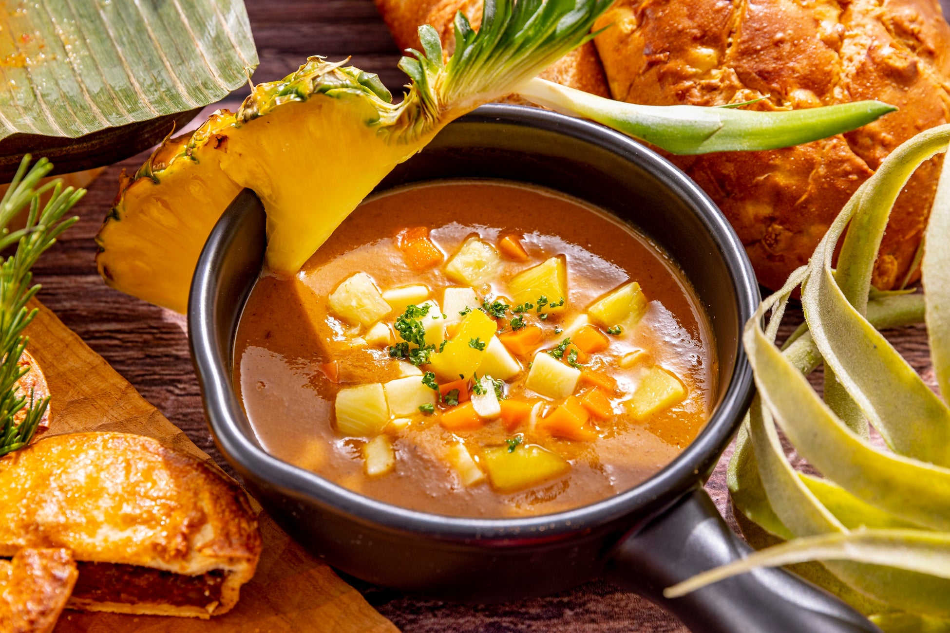 ココナッツミルクにパイナップルなどの甘みを加え、生姜、ニンニク、ターメリック等のスパイスで夏らしく仕上げたタヒチ風のカレー。ライスは日替わりでチェンジ。
