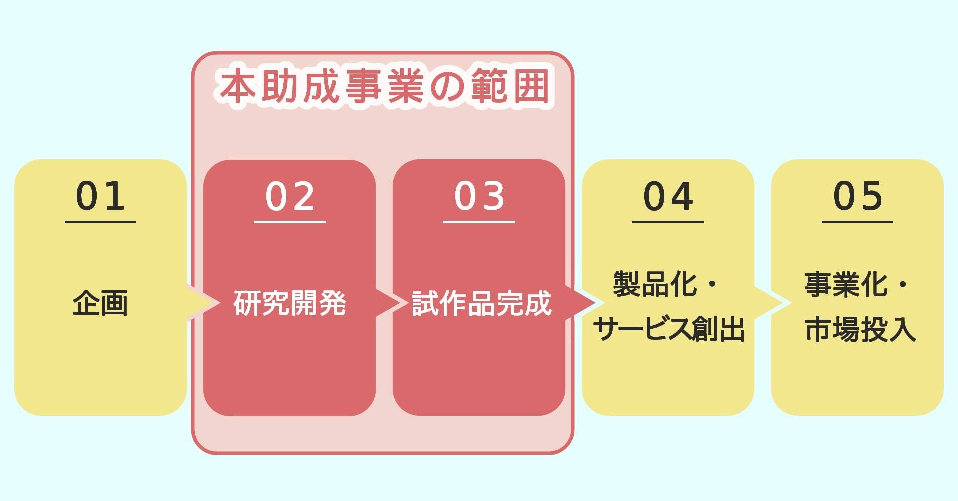 本事業では、製品・サービスを生み出すために、試作品の設計、製作、試験評価を行うことを「研究開発」と位置づけています。