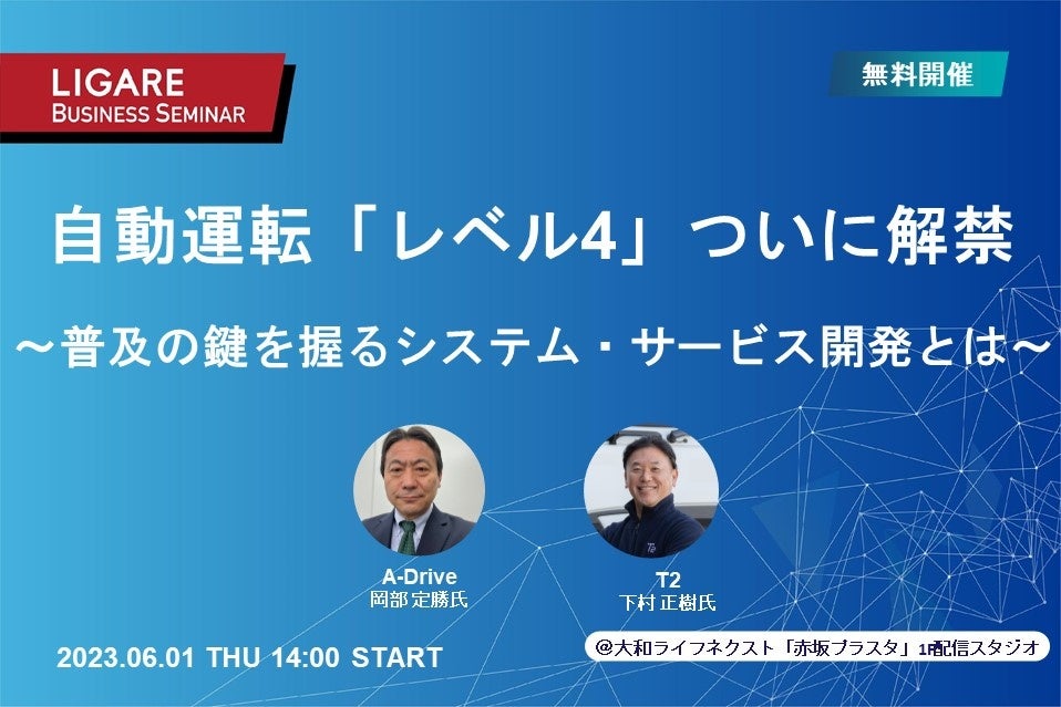 A-drive・T2が登壇「自動運転「レベル4」ついに解禁 ~普及の鍵を握るシステム・サービス開発とは~」6月1日(木)開催