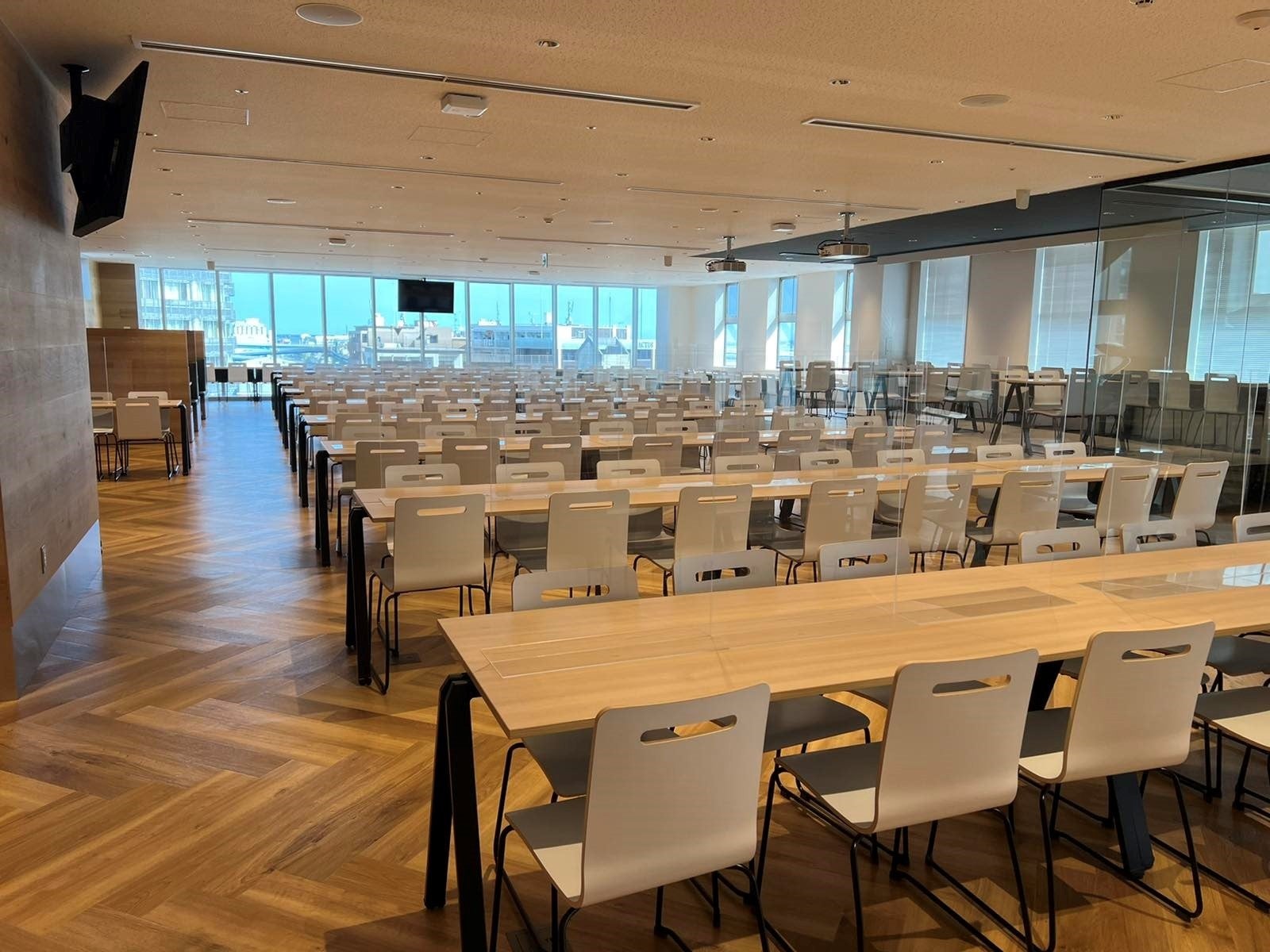 「福岡第1支社」および「福岡第2支社」ともに、利便性の高い天神エリアに位置しています。研修室や複数の会議室、休憩室を備えており、各フロアの扉にはカードリーダーを設置し、働きやすさとセキュリティを重視した設計になっております。また、社員専用のカフェテリア(食堂)では、栄養バランスに配慮した朝食・昼食・夕食の3食(※)を無料で提供します。