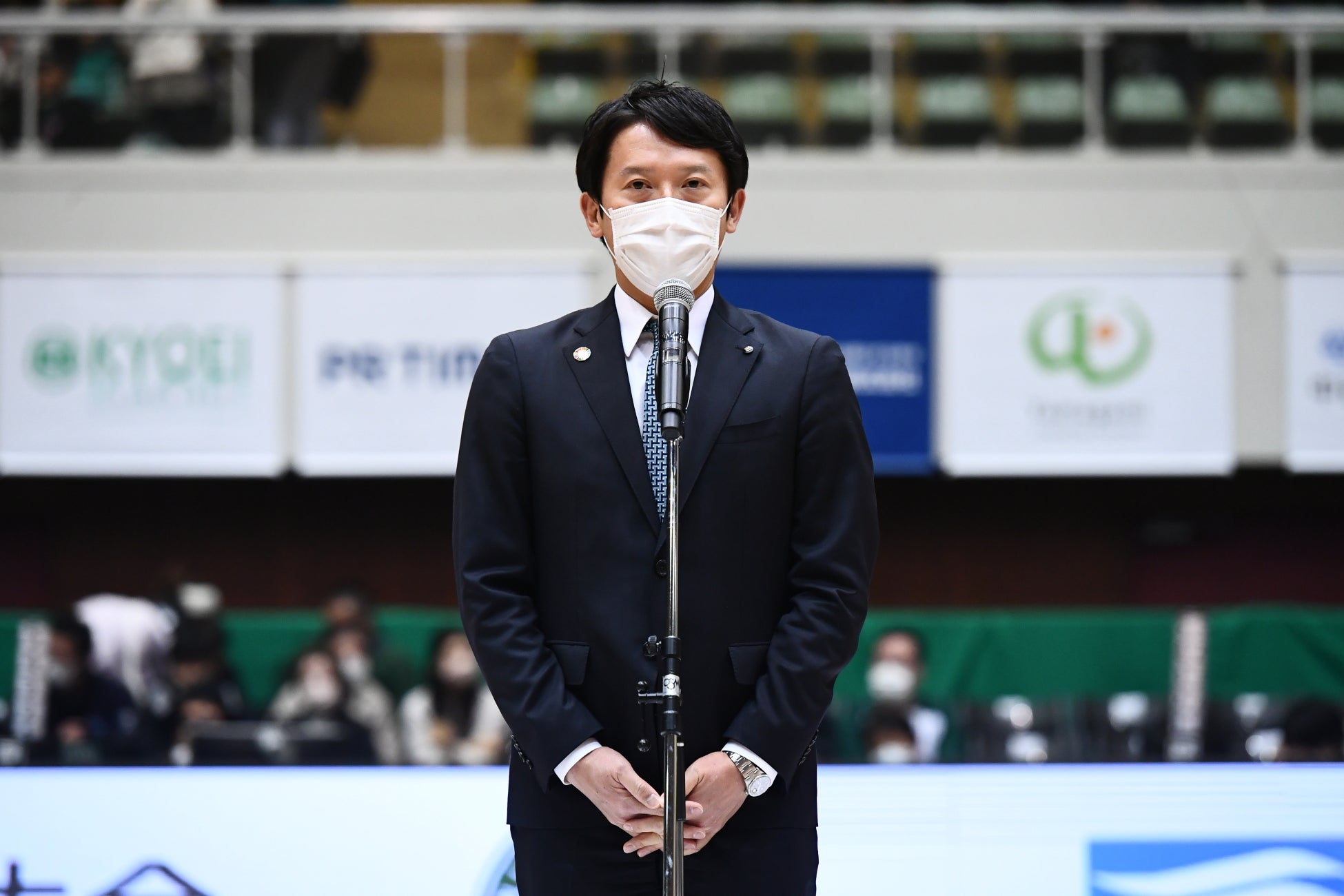 齋藤知事からは、「兵庫県をスポーツで盛り上げていきたい」「多くの子ども達がバスケットを見てその魅力を感じ、バスケットボールをやりたいという子どもが1人でもいることが兵庫県全体を元気にしていきます」と力強いお言葉をいただきました。