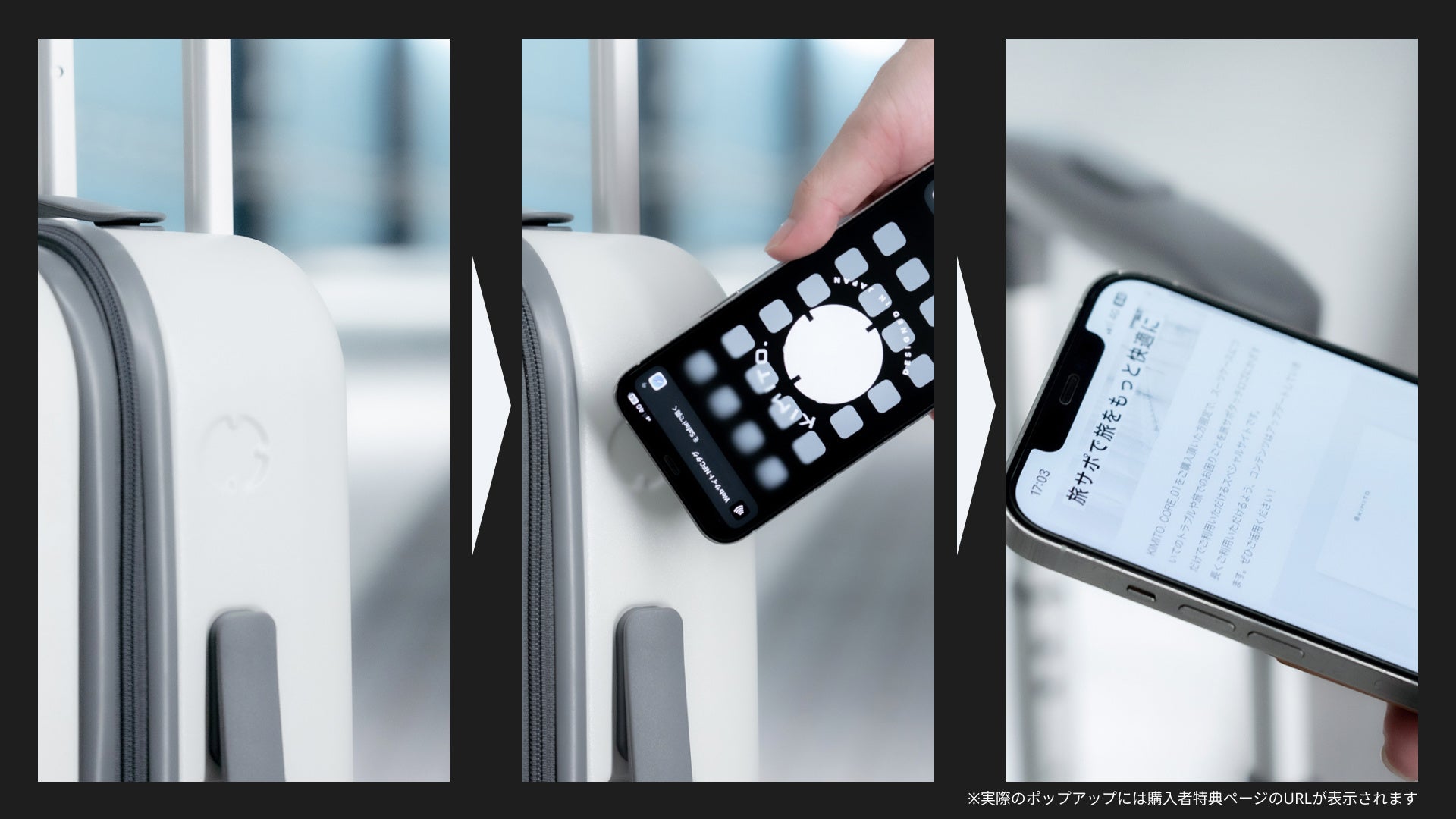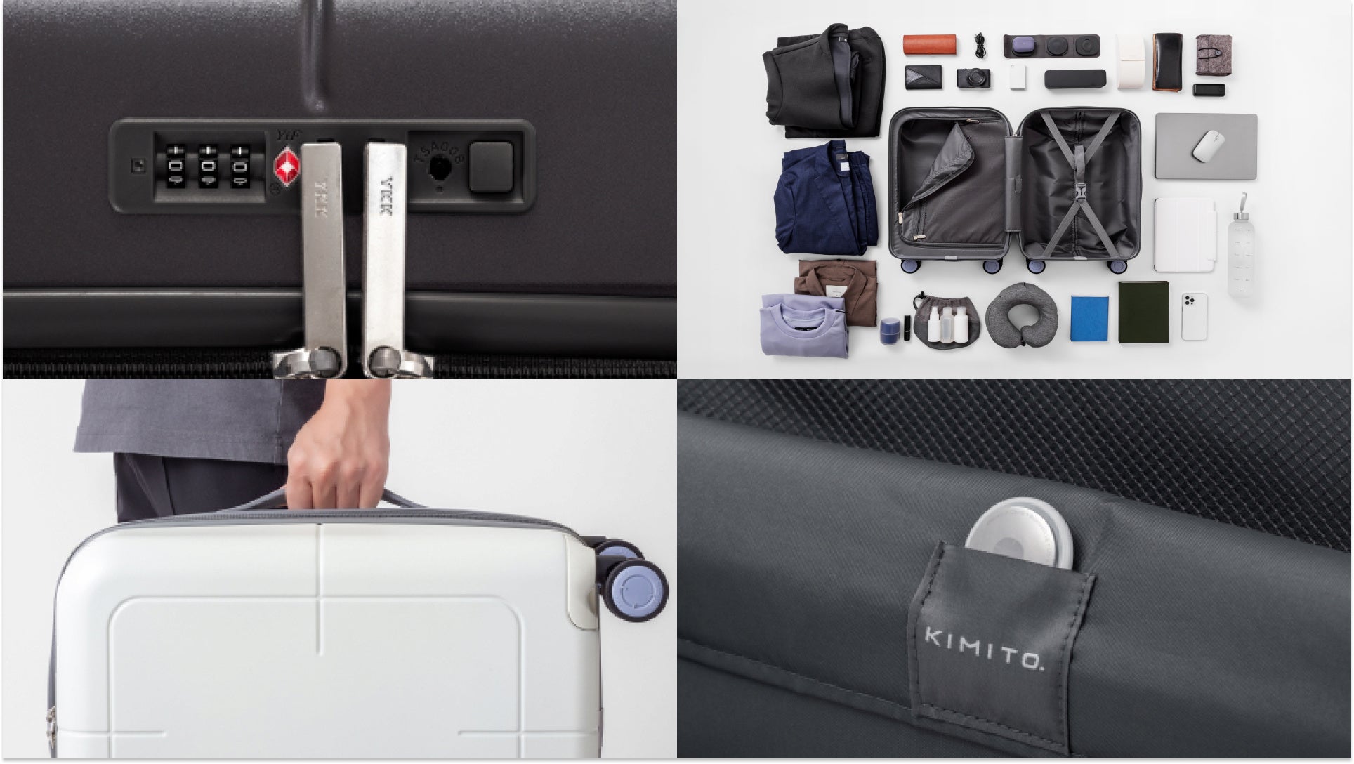 NFC技術を利用した『タビサポタッチロゴ™️』や、究極の静音キャスター、フック付き横脚など、アイデア溢れるスーツケースが誕生。https://kimito-you.com/