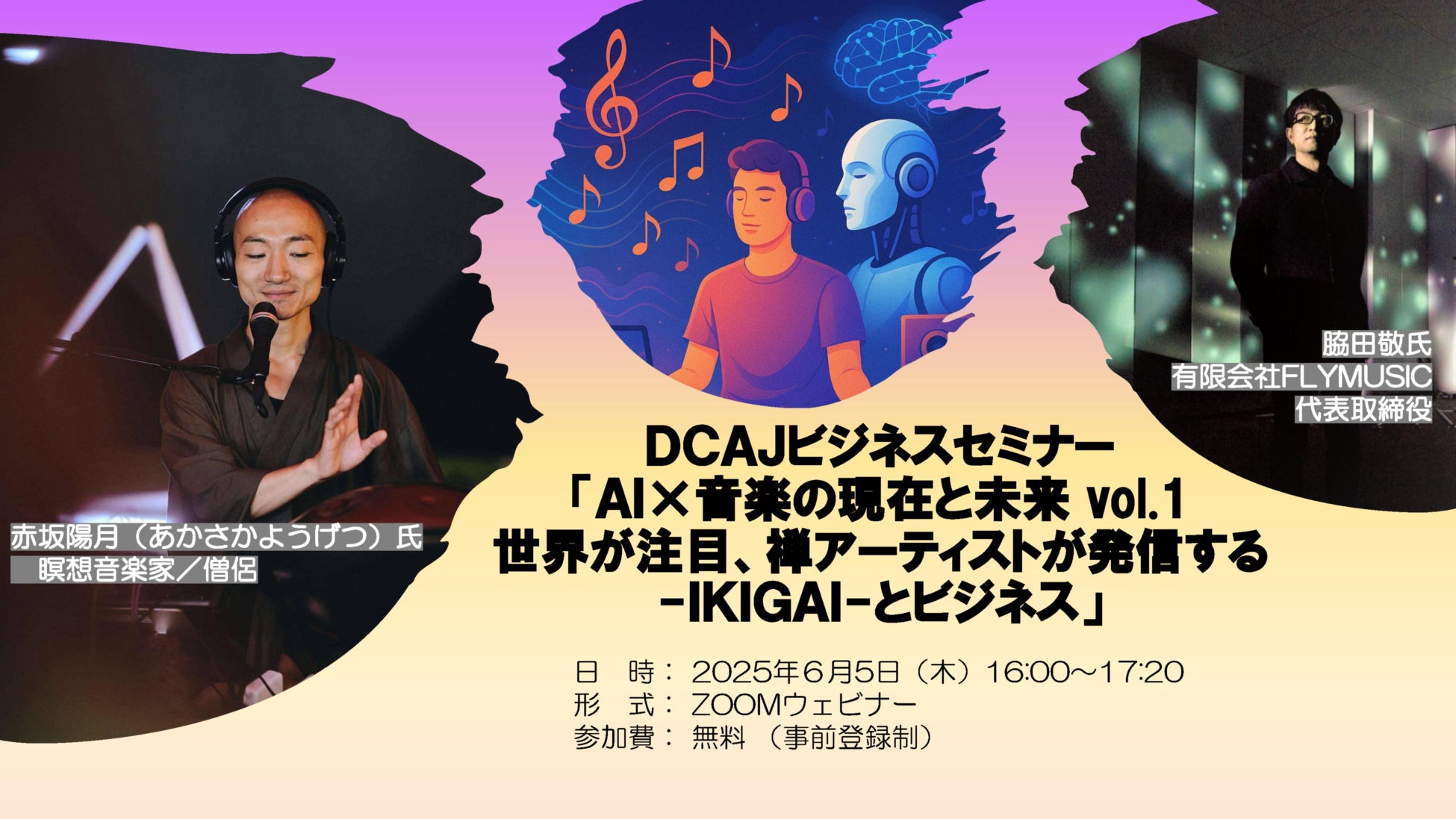 6月5日(木)にオンラインセミナー「AI×音楽の現在と未来 vol.1 世界が注目、禅アーティストが発信する-IKIGAI-とビジネス」を開催