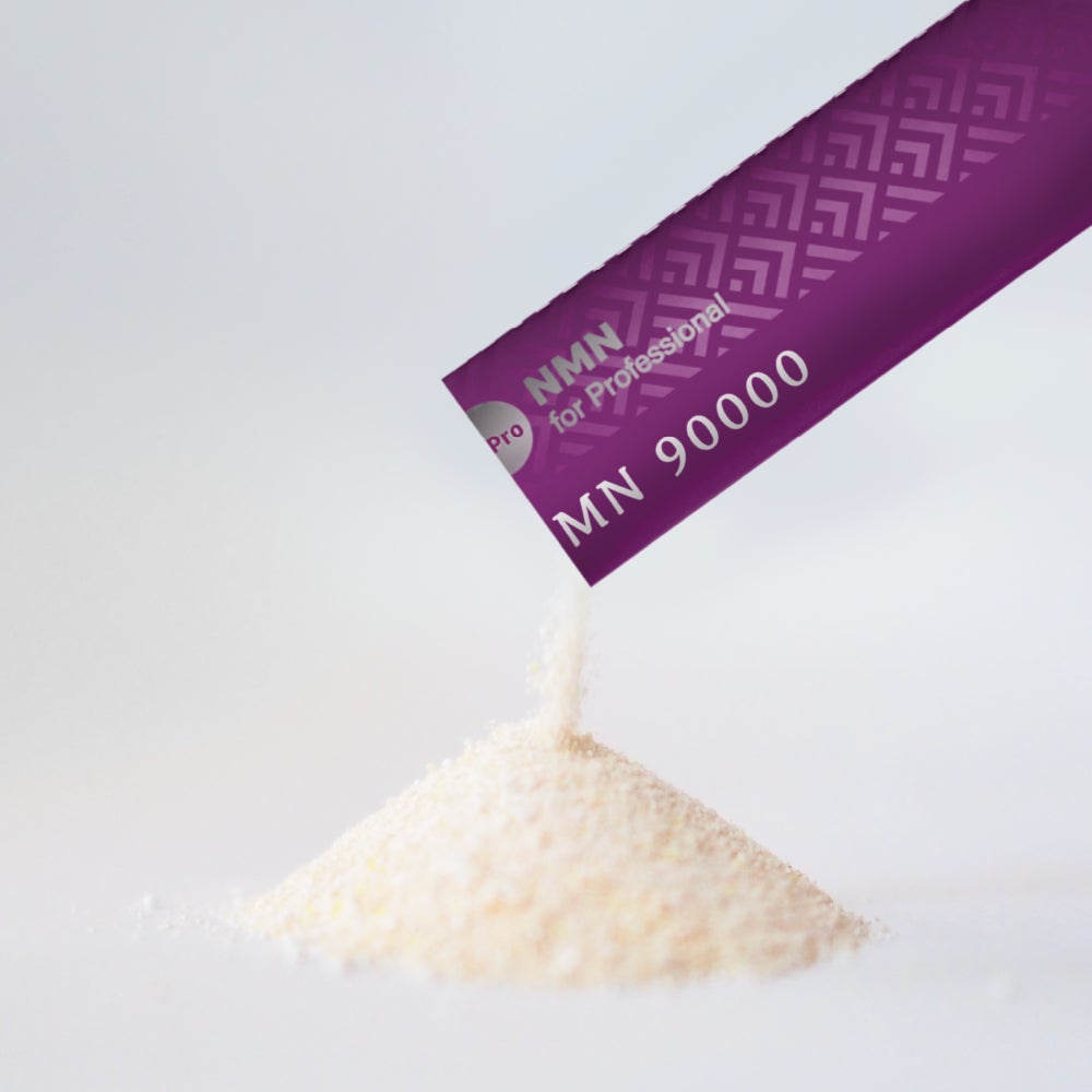 NMN(ニコチンアミドモノヌクレオチド)。 私たちは、NMNが食品として認められる以前からその安全性と効果を自社研究データに基づき厚生労働省へ提出し、2020年に世界初となるNMNを食品として認める法改正を実現しました。こうして誕生したのが、私たちのNMN製品です。国内製造で、純度99.9%を誇る高品質なβ-NMNを採用。NMNのパイオニア企業として、これからも上質な製品を提供し続け、お客様の健康と美をサポートしてまいります。