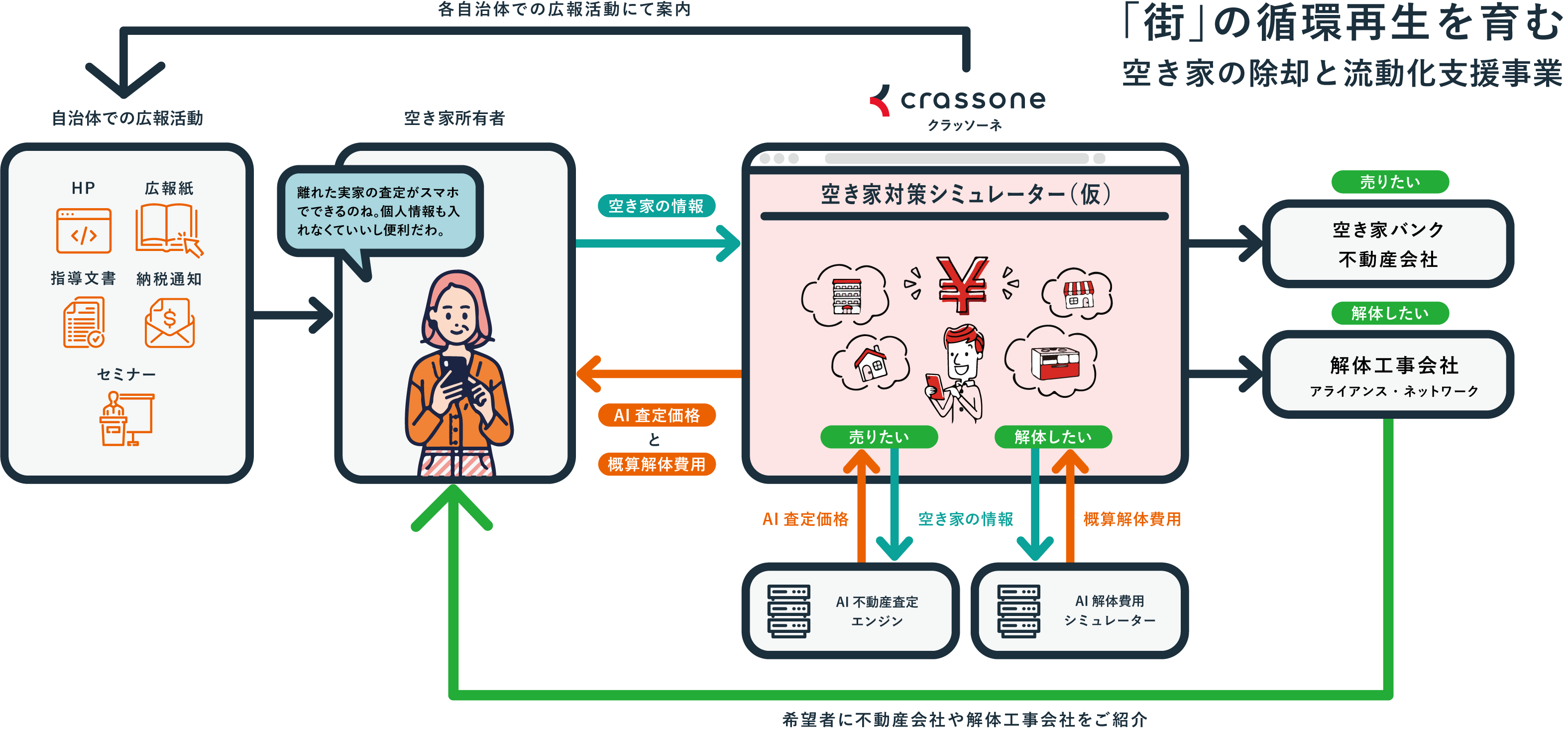 【2年連続、国交省「住宅市場を活用した空き家対策モデル事業」の事業者にクラッソーネが採択】解体費用・土地売却価格が把握できるシミュレーターを自治体に無償提供、空き家の解体・利活用を推進