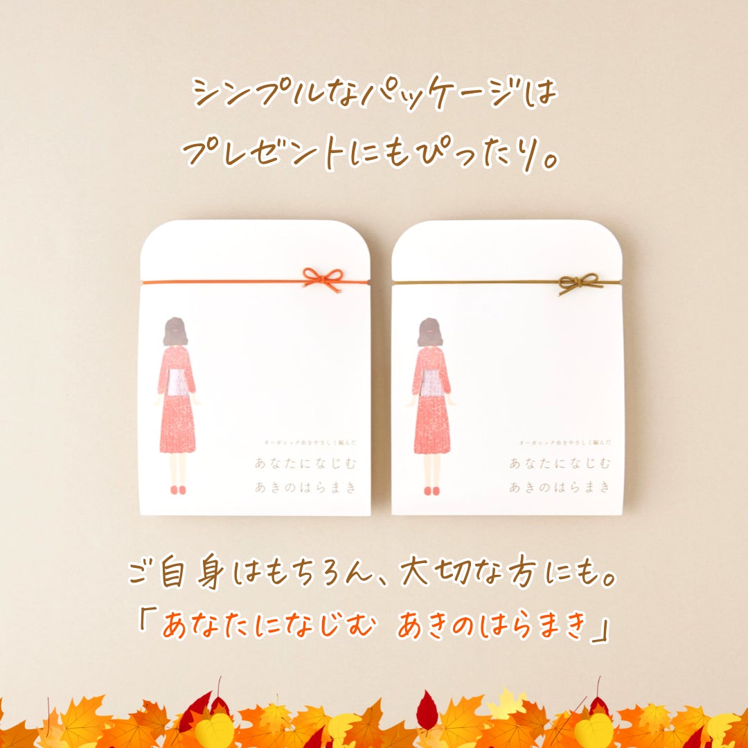 《少し厚め》がちょうど良い…。ありそうでなかった「あきのはらまき」が販売から5年目に突入。オーガニックコットンのやさしさを携えて今年は8月23日より、《冷えに悩む方に心込めて》販売開始。