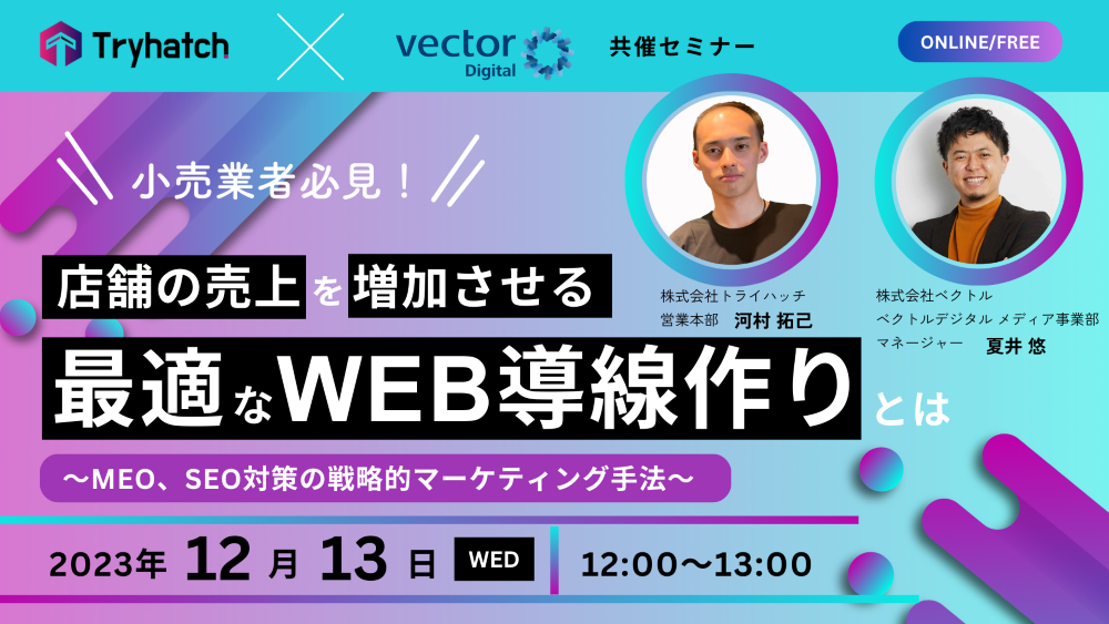 【12月13日(水)】無料オンラインセミナー「小売業者必見!店舗の売上を増加させる最適なWeb導線作りとは? ~MEO、SEO対策の戦略的マーケティング手法~」を開催