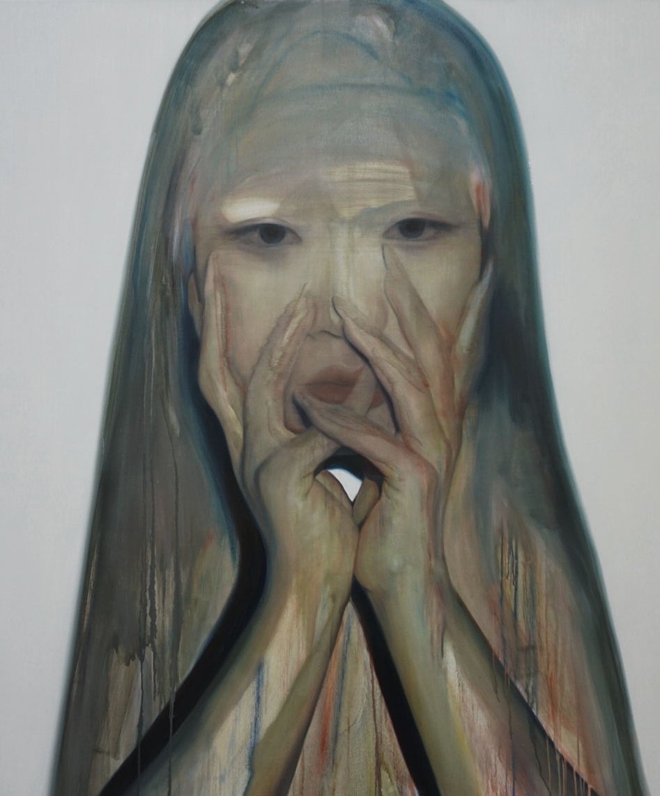 川上は1998年大阪府生まれ。人間とその身体の奥深くに眠る自然との関係性に着目し、主体としての身体をすべての人たちのために 取り戻すことを目指しています。”キャンバスの向こう側にある世界(場所、 place、there)とキャンバスのこちら側の現世を繋ぐ/隔てるための窓”としての絵画を描いています。