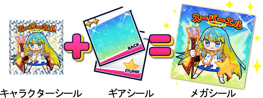 「キャラクターシール」と「ギアシール」の組み合わせにより、プレイヤーだけの「メガシール」を作ることができます。