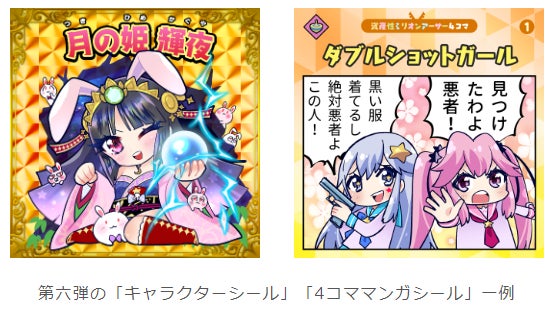 第六弾「-月を狙う死神と蘇りし王-」では、全11種※の「キャラクターシール」、全12種の「フレーズシール」、全8種(2話)の「4コママンガシール」が新たに登場します。「キャラクターシール」には、「拡散性ミリオンアーサー」や「交響性ミリオンアーサー」のキャラクターがラインアップされます。4コママンガシールの内容はこれまでと同様に、ちょぼらうにょぽみ先生による「弱酸性ミリオンアーサー」の完全新作4コマ漫画となります。