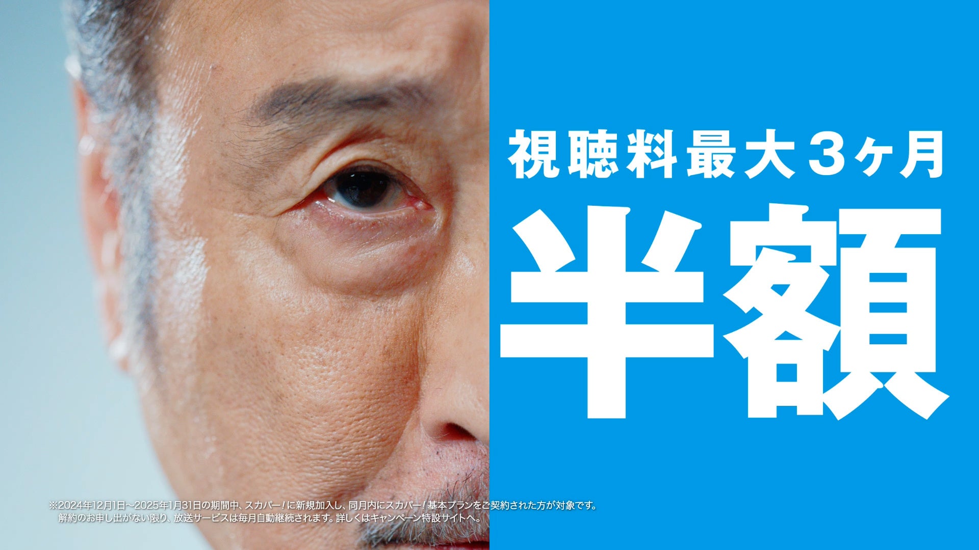 50チャンネル見放題のスカパー! 基本プラン 視聴料最大3ヶ月半額キャンペーン12月1日(日)より開始‼ 吉田鋼太郎さん出演 新TVCMも放送中‼