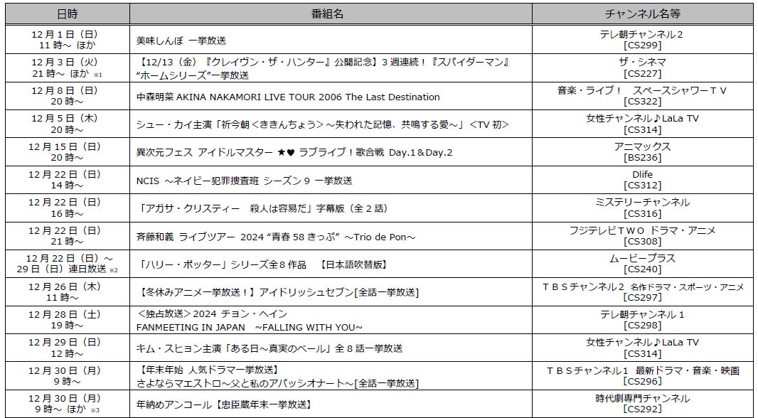 ※1…3日(火)字幕10:00吹替21:00『スパイダーマン:ホームカミング』、10日(火)字幕10:00吹替21:00『スパイダーマン:ファー・フロム・ホーム』、