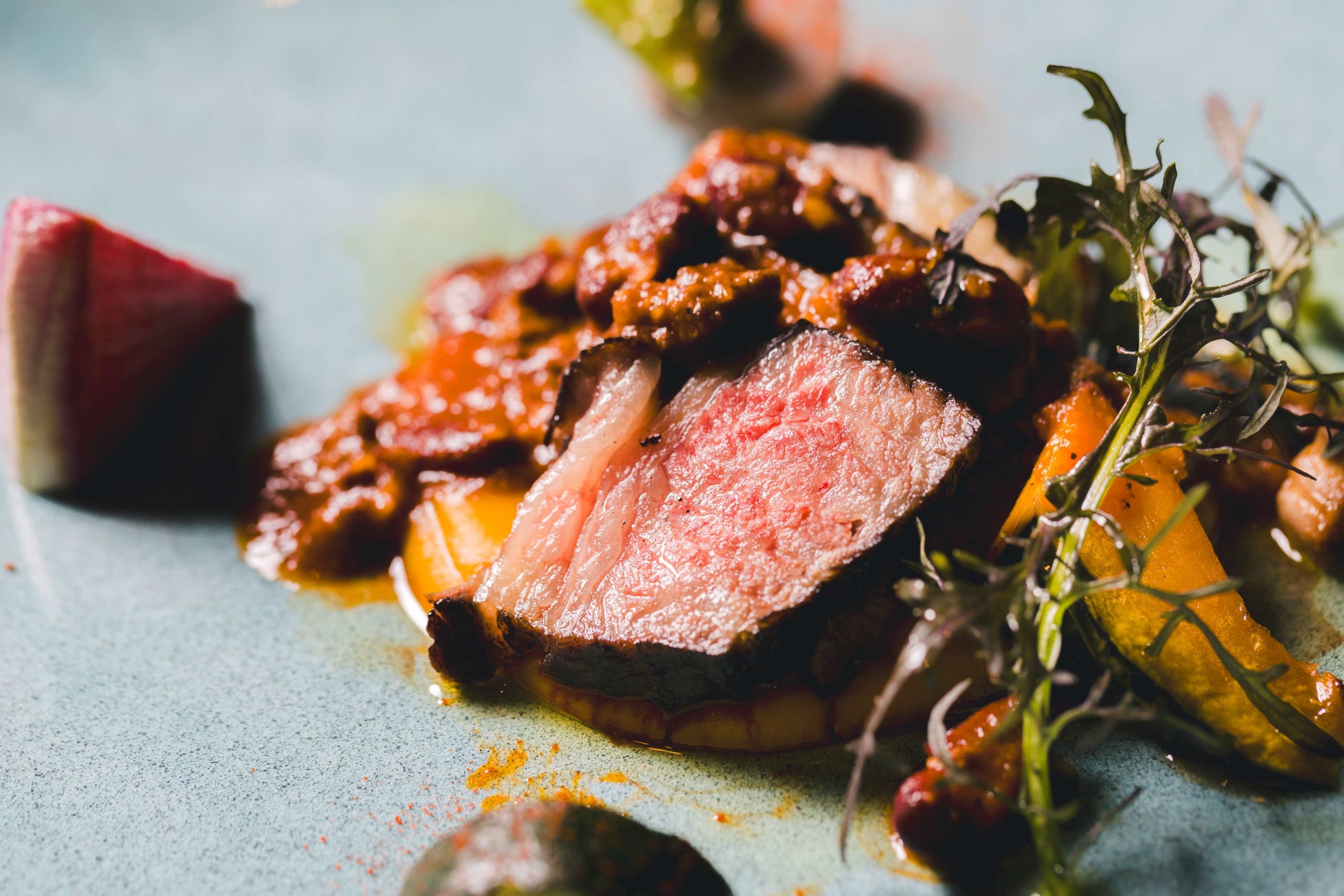 和牛フィレ肉とオマール海老のサーフアンドターフ 赤い果実と黒七味のジュとソースショロン(+\5,000)