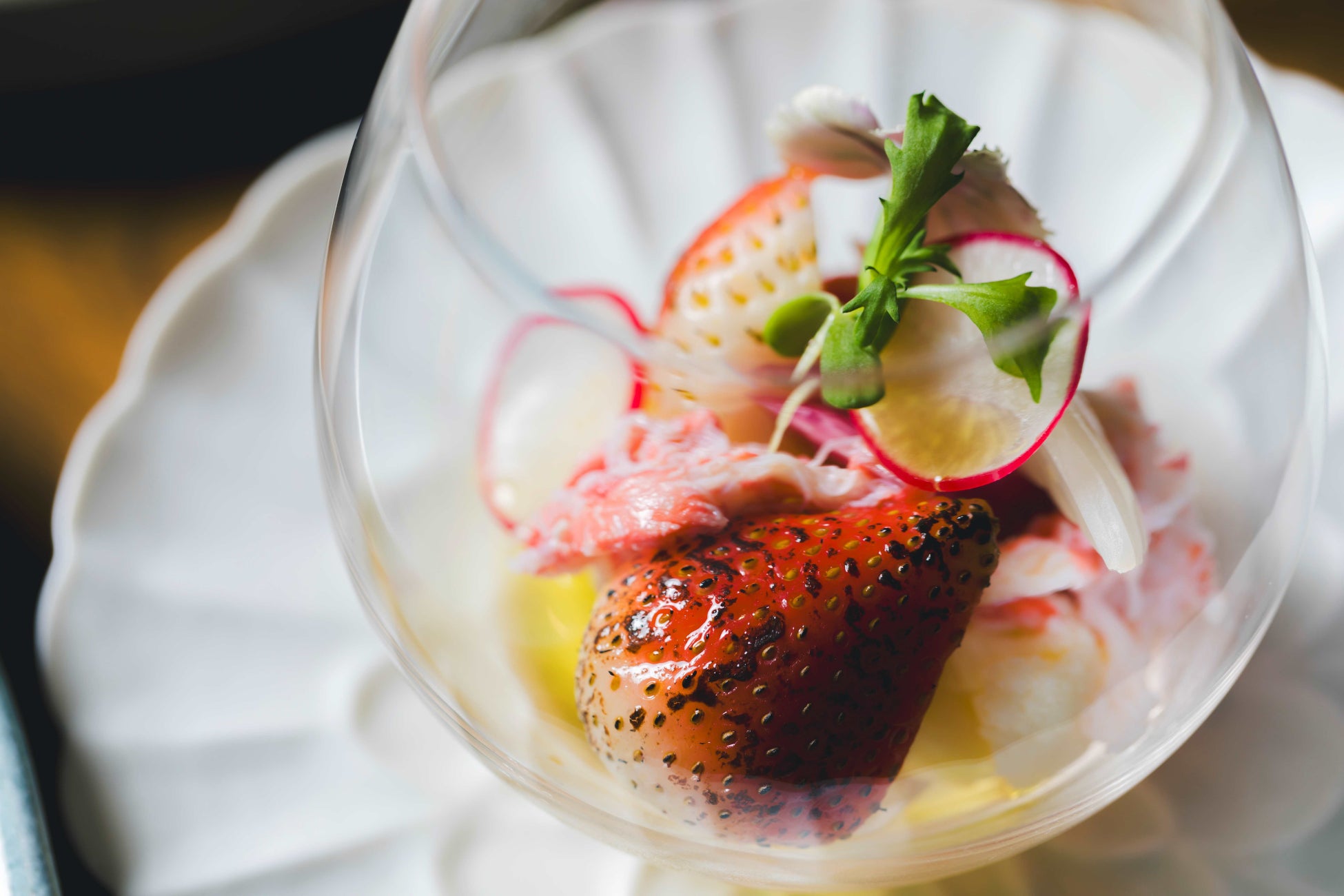 焼きいちごとずわい蟹のカクテル 白和えクリーム