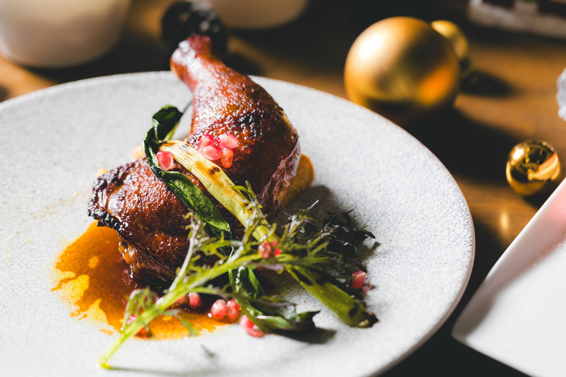 スモークチキンレッグ ザクロのソースヴィガラート