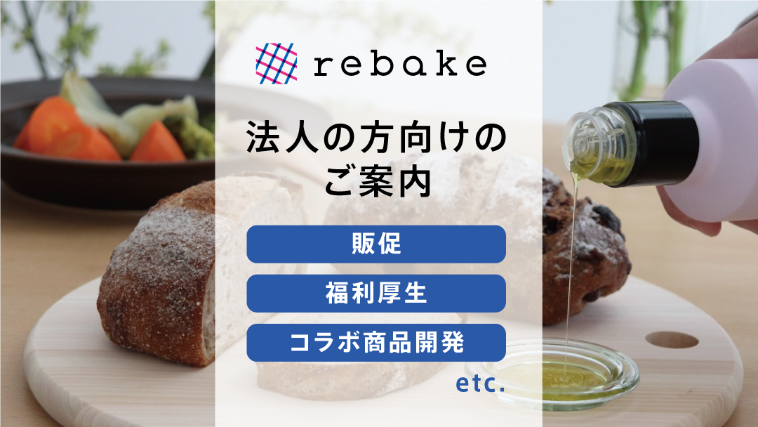 本サービスでは、景品・販促キャンペーン、法人ギフト、従業員向けの社食や福利厚生としてなど、幅広い用途にrebakeを使っていただけます。本サービスを通して、私たちの取り組みに賛同いただいた企業様と協力し、rebakeがこれまで取り組んできたフードロス削減への取り組みの拡大とともに、企業のSDGsへの取り組み拡大をサポートします。サービス始動に伴い、法人の方専用のページも開設いたしました。