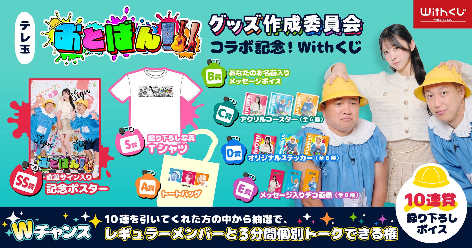株式会社WithLIVE(東京都渋谷区、代表取締役:大島翼)が運営するオンラインくじプラットフォーム「Withくじ」にて、テレビ埼玉「おとばん!!!」とのコラボレーションによるオンラインくじ企画「おとばん!!!グッズ作成委員会 Withくじ」を販売いたします。