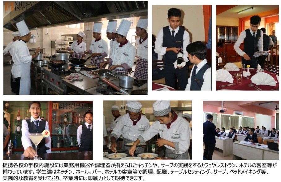 今回japantownに創設したFourth Valley Academyが提携する4つの大学では、座学での専門教育のみならず、レストランやホテルで働くための実践スキルを身につけることのできる施設が設けられています。さらに、レストランやホテルでのインターンシップも単位に含まれる等、実践的な教育が提供されています。卒業時にはキッチンでの調理、ホールやホテルでの接客、レストランでのサーブ技術等を習得した人材として即戦力となり、ホスピタリティ分野での就労が可能です。