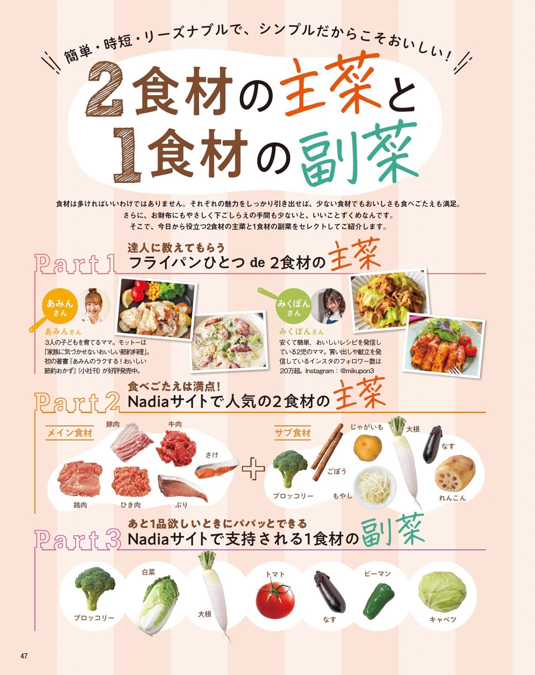 そのほか、Nadia Artistの調味料や乾物の収納テクニックを紹介する企画や、Nadia編集部員のおすすめレシピを紹介する「偏愛レシピ」ページなど、充実した内容になっています。
