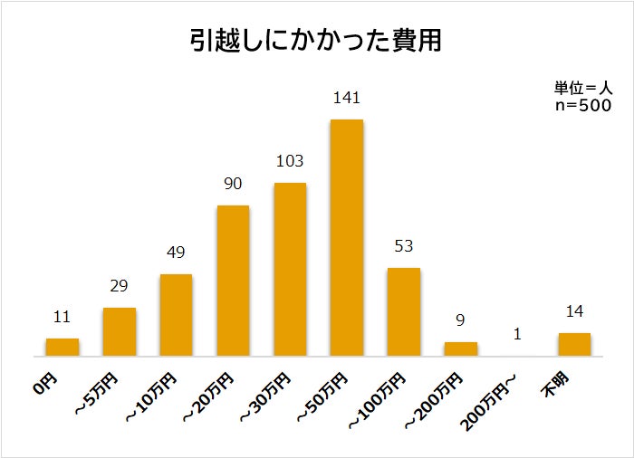 続いて「引越しにかかった費用」について聞いたところ、以下のような結果になりました。