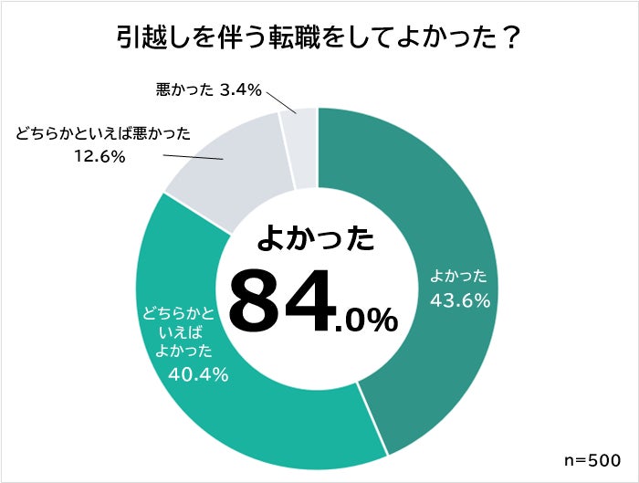 引越しをともなう転職をして「よかった」「どちらかといえばよかった」と答えた人は84.0%。
