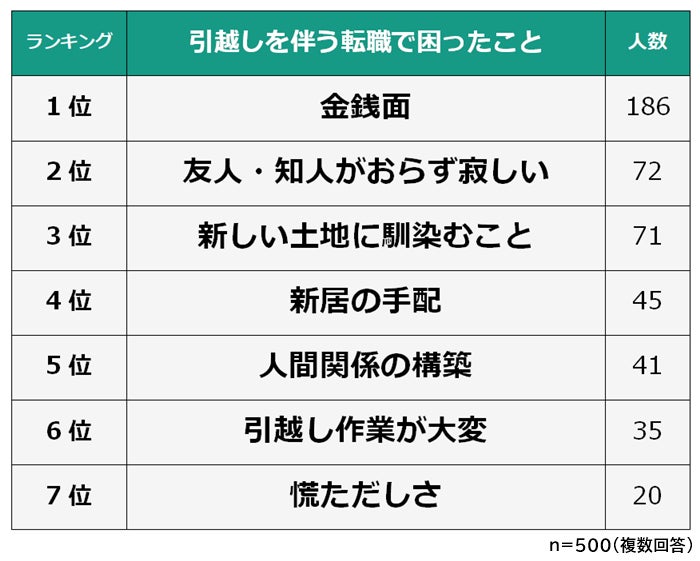 【引越しを伴う転職で困ったことランキング】500人アンケート調査