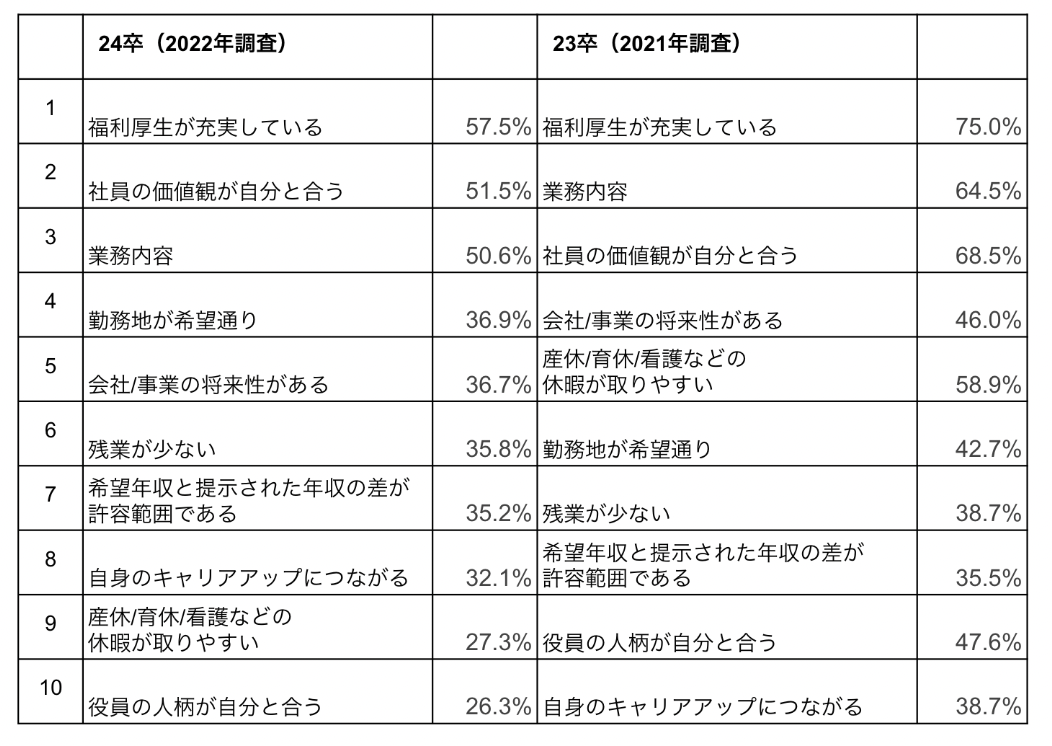 半数以上の学生が福利厚生が充実している場合、希望年収額より低くても辞退せず〜新卒配属1年目の年収に関する調査を発表〜