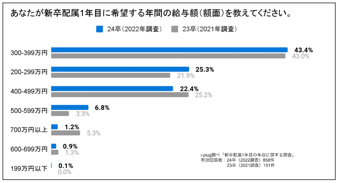 学生と企業をつなげる新卒ダイレクトリクルーティングサービス「OfferBox(オファーボックス)」を運営する株式会社i-plug(本社:大阪市淀川区、代表取締役CEO:中野智哉)は、2024年卒業予定学生(以下、「24卒学生」)を対象に希望年収額に関するアンケートを実施しました。