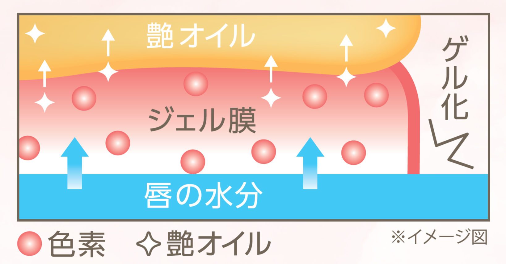 唇の水分と反応して、色を守るジェル膜を形成。