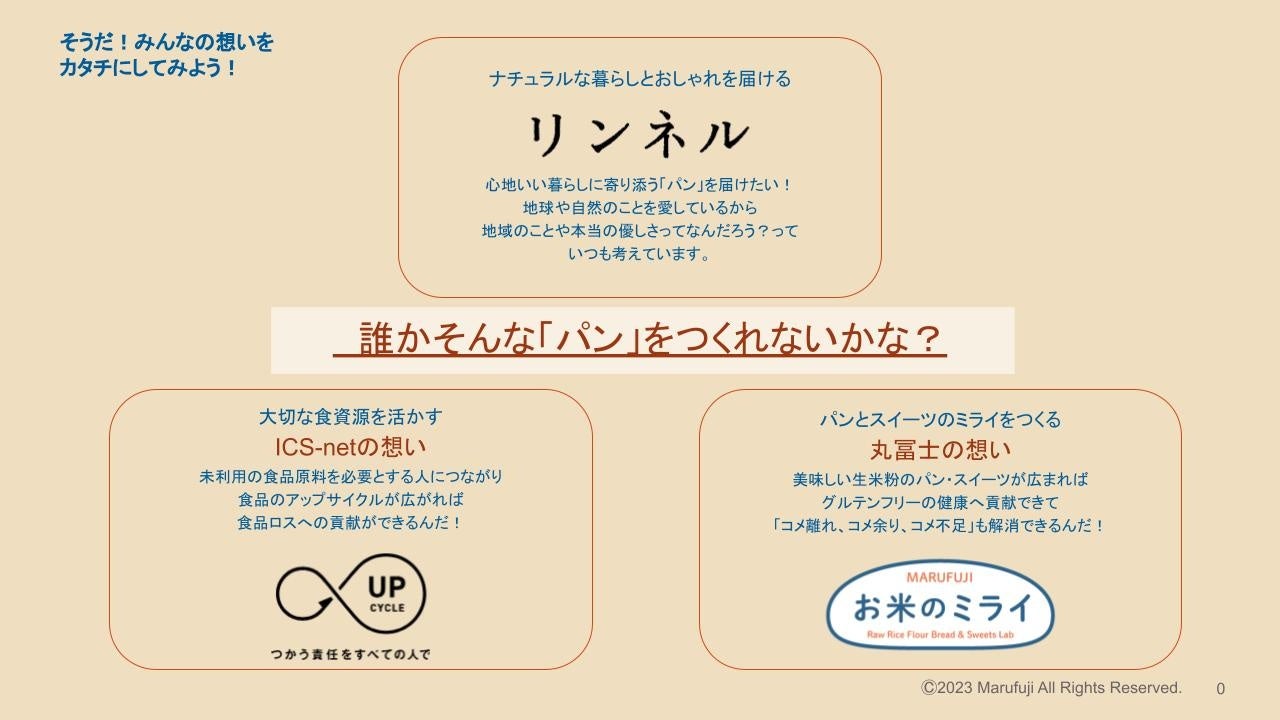 今回は人気女性誌「リンネル」監修のもと、国産の古米を活かした米粉で美味しいパンを作っている「丸冨士」さん、そしてシェアシマが調達した”未利用原料”を具材に練り込んだパンを作りました。その名も『アップサイクルフード・米粉ブレッド from 信州』。