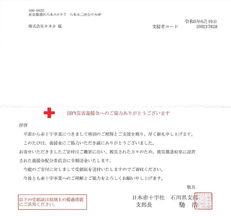 株式会社キネカは、令和5年5月能登地方地震災害義援金に寄付いたしました。