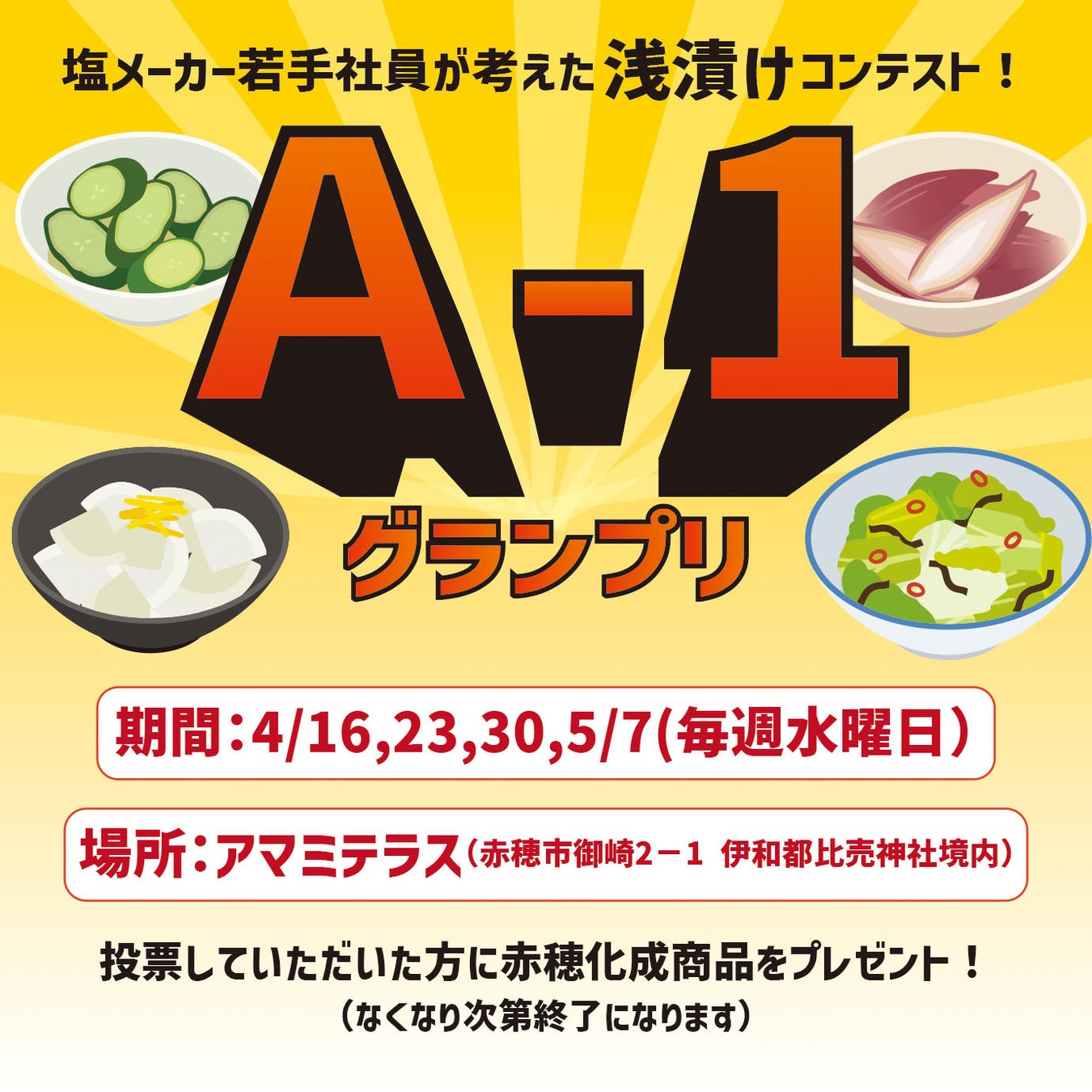塩づくりの技術を基盤にしたミネラルの総合メーカーである赤穂化成株式会社(本社:兵庫県赤穂市、代表取締役社⻑:池上良成、以下「赤穂化成」)は2025年4月16日(水)~5月7日(水)の期間中、瀬戸内海を望む自社運営の塩をコンセプトにしたカフェ「AMAMI TERRACE(アマミテラス)」にて、浅漬けのNo.1を決める初の一般参加型イベント「A-1グランプリ」を開催いたします。