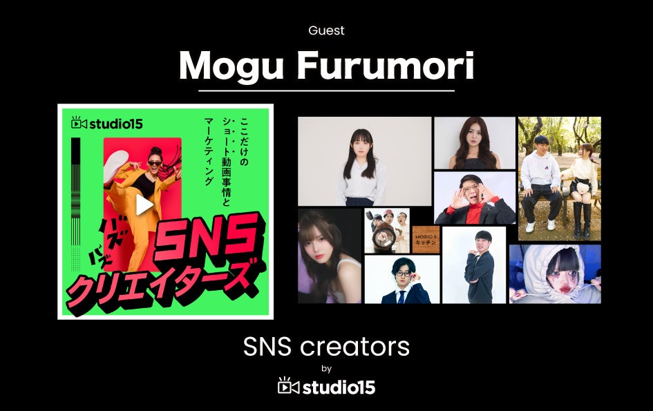 studio15オリジナルのpodcast番組「SNSクリエイターズ」では毎話TikTokやYouTubeを中心にSNSやショート動画で活躍するクリエイター(インフルエンサー)や企業のSNS担当の方をゲストに迎え、ラジオ感覚でSNSマーケティングの秘訣や、なかなか普段聞くことのできないクリエイターの背景やクリエイターを目指した経緯を”耳で学ぶ”ことができます。