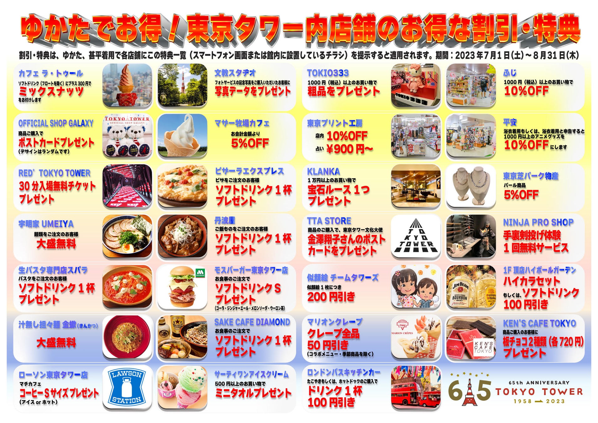 東京タワー内の対象店舗で様々な割引・特典を受けられます!