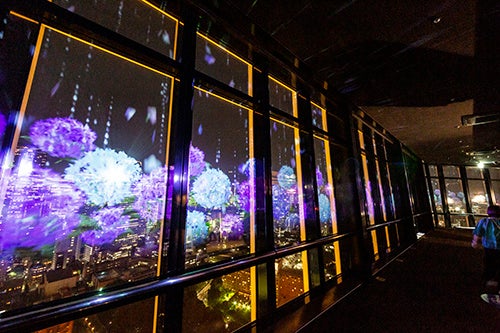 展望台からの景色を背景に、開催中の夏の風物詩「天の川イルミネーション」と夏のプロジェクションマッピング「CITY LIGHT FANTASIA ~Summer landscape~」をぜひ、お楽しみください!