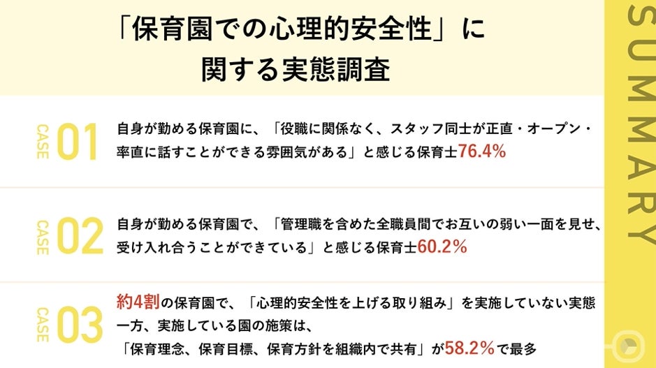 【新年度における保育園の心理的安全性を調査】約4割の保育園は、「心理的安全性」向上の取り組みを実施せず!各園の具体的な取り組みは?