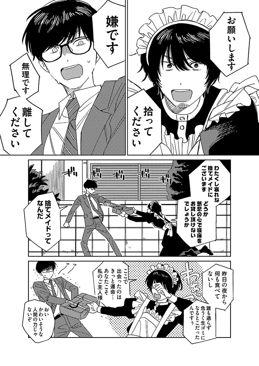 昼間正午が贈るハートフルかつだいぶハードな人生コメディ『メイド拾った (1)』が8月20日発売!!