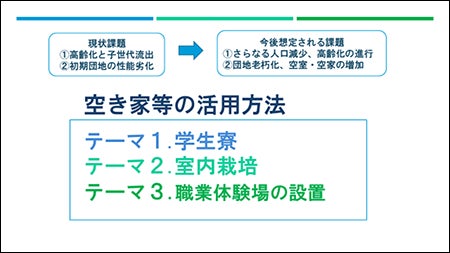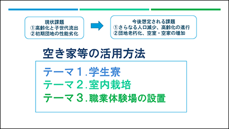 便利に生活出来る街づくり:空きスペースの活用方法 等