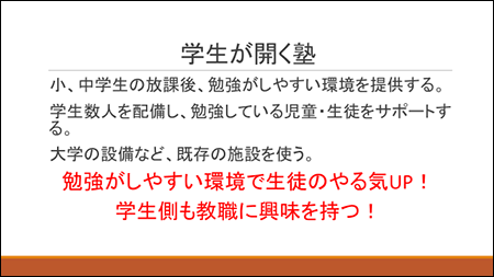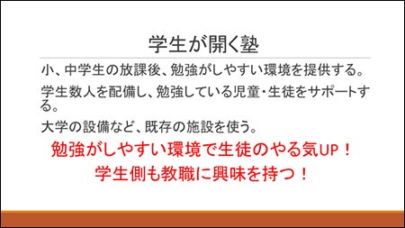 地域の児童・生徒への教育環境の提供:学生による塾の開講