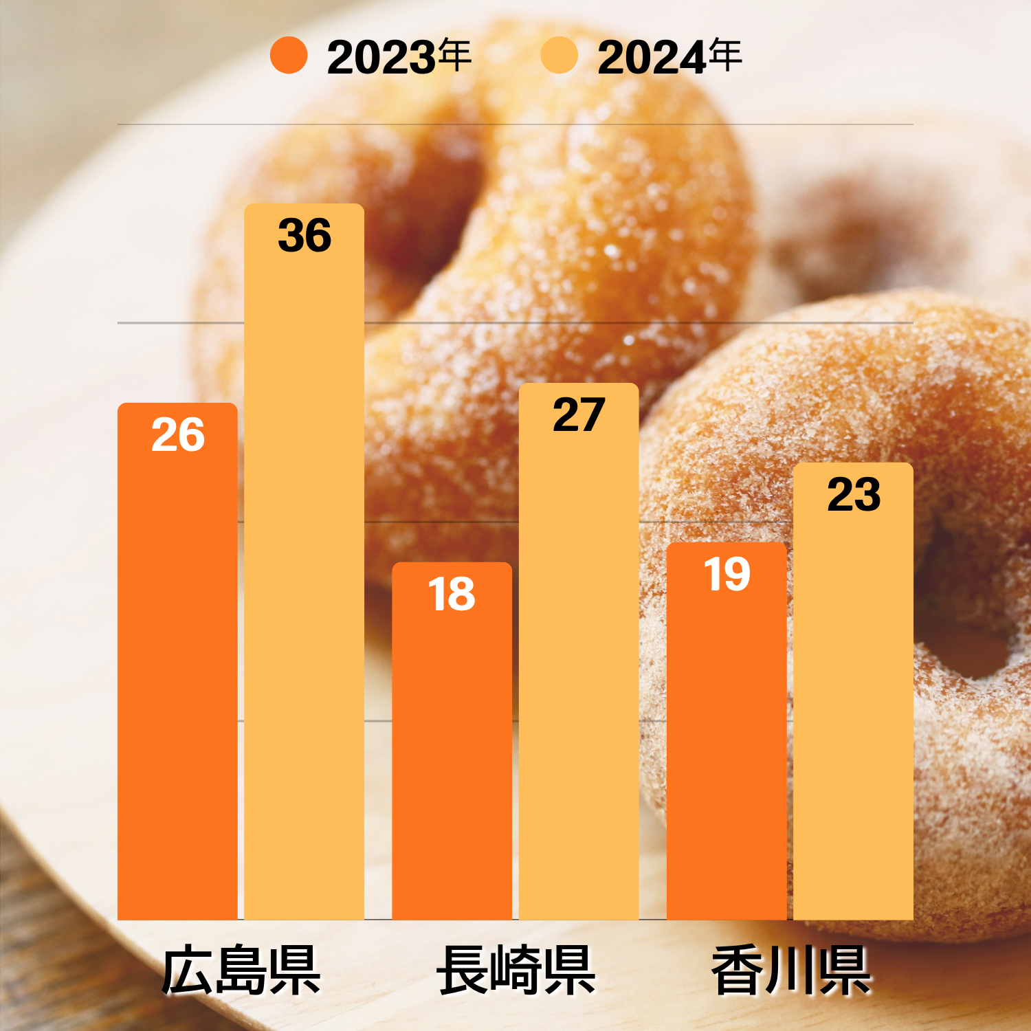 2024年における「お菓子・スイーツ」の出店件数を都道府県別に見ると、以下のエリアが上位を占めました。