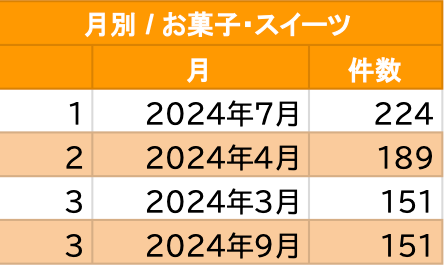 このように「お菓子・スイーツ」業界では、“季節”がそのまま“データの波”として表れていることが分かります。