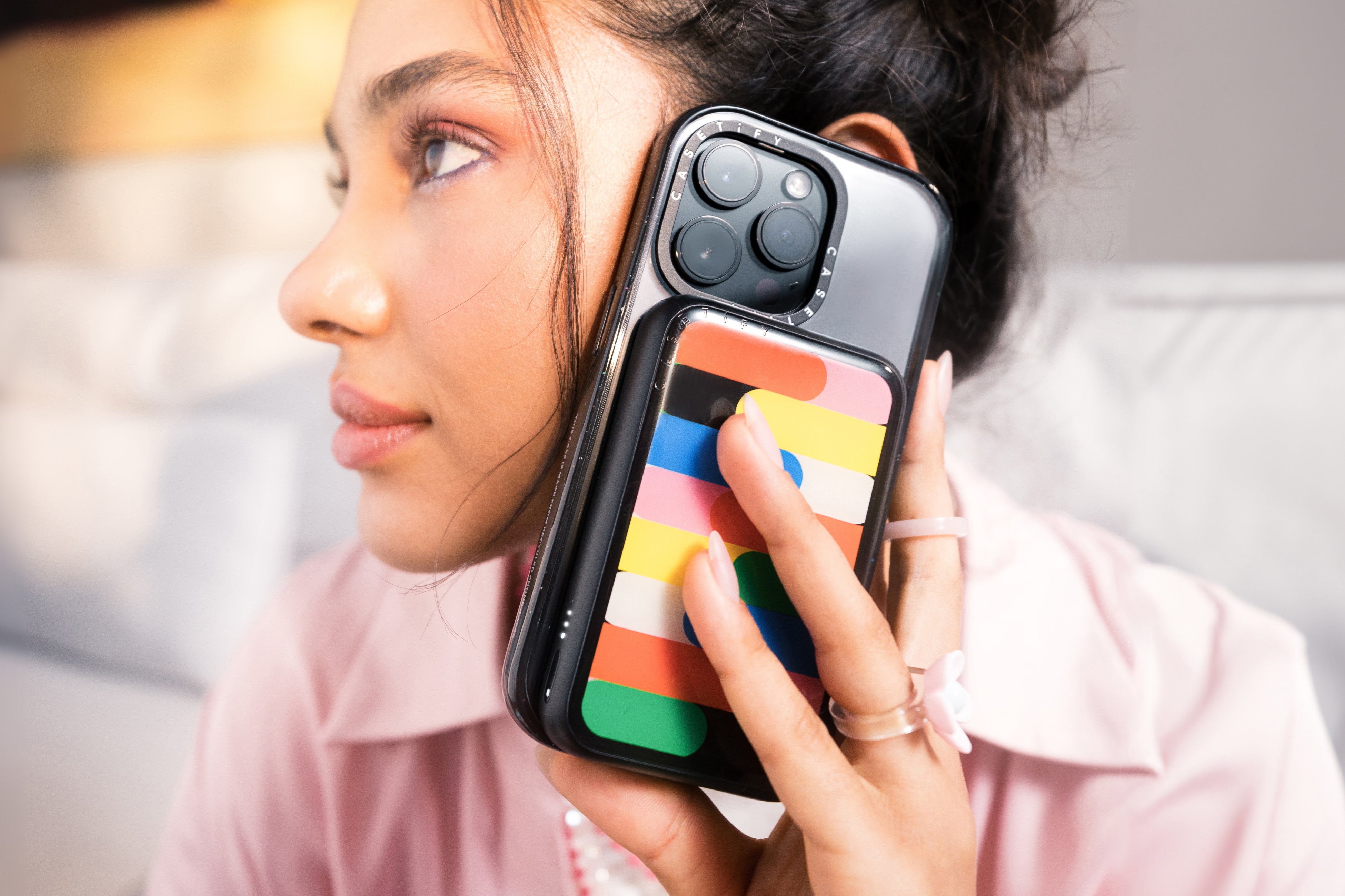 スリムな形状のPowerThru™パワーバンクは、わずか13mmの厚さにもかかわらず、最大5,000mAhという驚異的なバッテリー容量を持ち、スマホの長時間使用が可能。また、LEDインジケーターによっていつでも使用状況や充電のタイミングを把握できます。さらに、CASETiFYならではのプリントデザインやカスタマイズによって個性を引き立つデザインをお楽しみいただけます。
