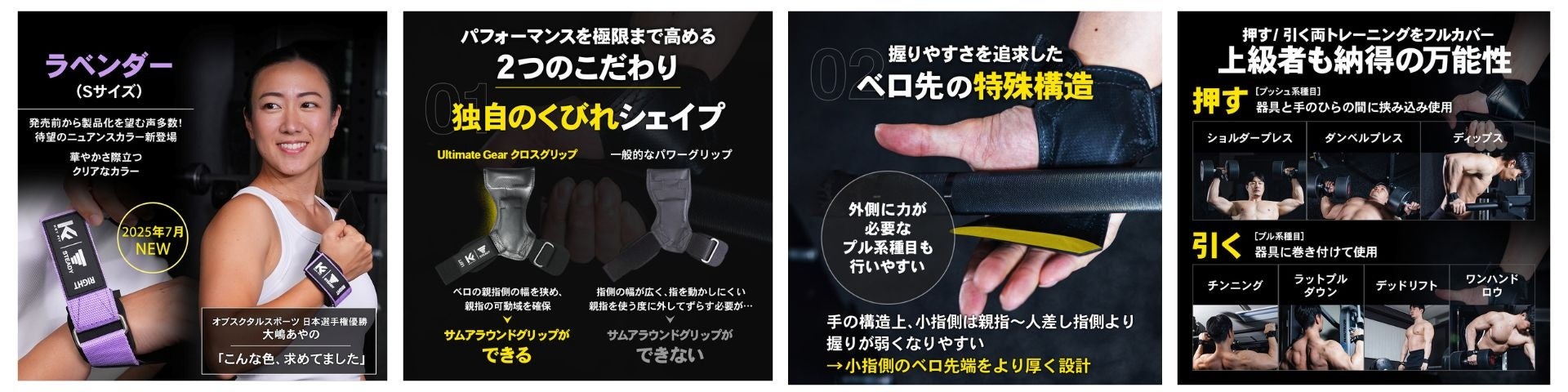 国内外で活躍するトップボディアスリートの久野圭一選手とSTEADYが、これまでの知見と叡智を結集して贈るUltimate Gearシリーズ」の第1弾「STEADY Ultimate Gear クロスグリップ」の新色ラベンダーが2025年7月1日(火)より販売開始。ベロ部分のシェイプや構造に独自工夫を施し、押す / 引く両方の動作に使える上級者も納得のパワーグリップが、手首の細い方でも快適に使っていただける新サイズで仲間入りしました。
