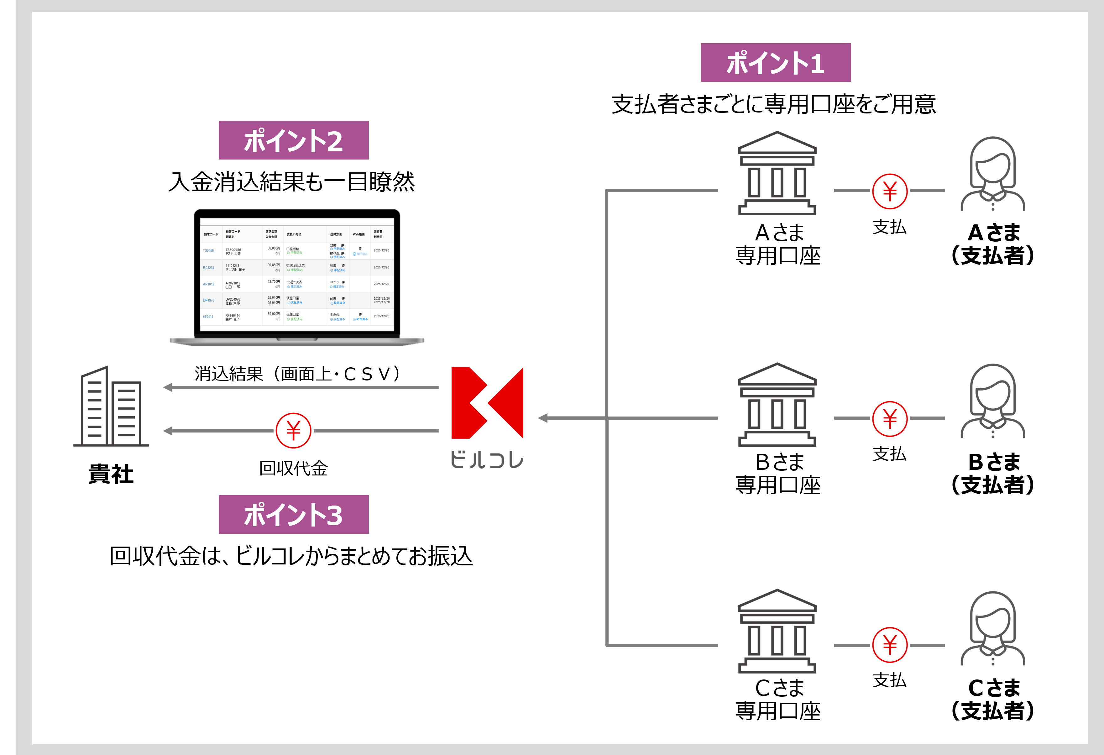 支払者さまごとに専用口座を割り当てることで、入金元を容易に特定できます。