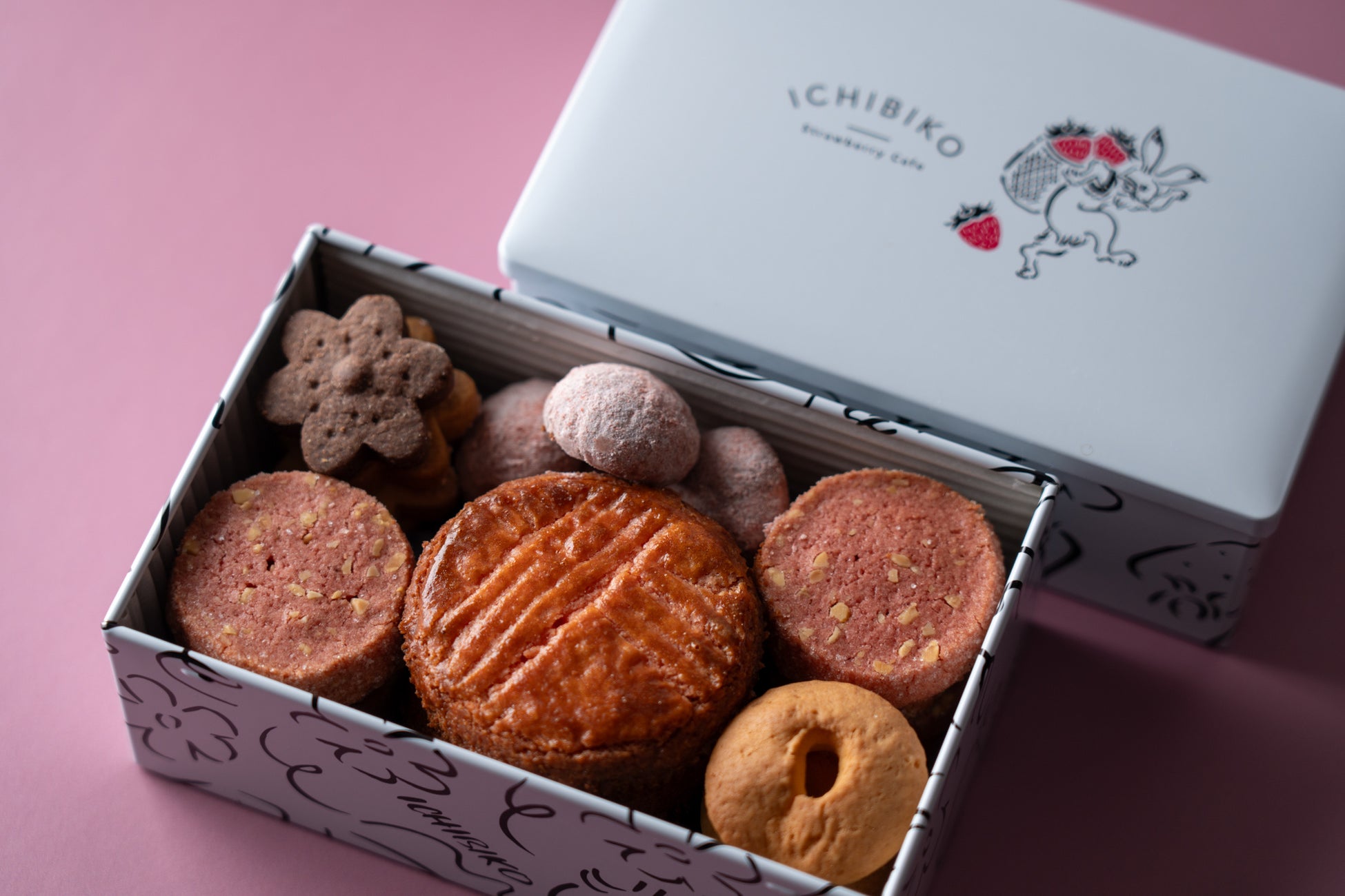 (いちごのガレットブルトンヌ、いちごのクッキー、うさぎのしっぽ、フラワークッキー、ドーナツ型クッキー)