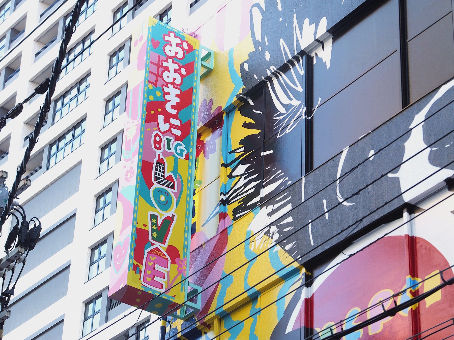 イラストレーター・大原そう氏のデザインによって「おおきにBIGLOVEビル」に生まれ変わりました。