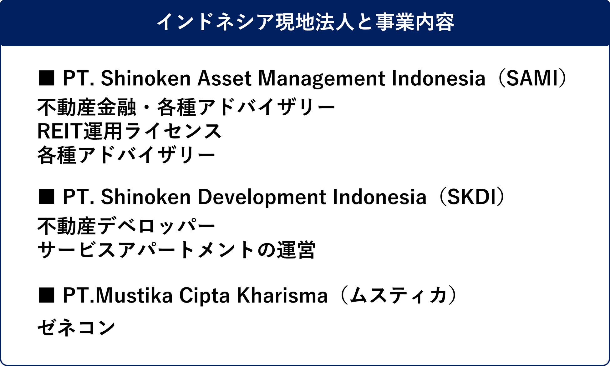 株式会社シノケングループ(以下、グループを総称して「当社グループ」)のインドネシア現地法人であるPT. Shinoken Asset Management Indonesia(以下、「SAMI」)は、同国のコンサルティングファームPT. Moores Rowland Indonesia(以下、「MRI」)と業務提携し、MRIの日系企業向けジャパンデスクを共同設立しましたのでお知らせいたします。