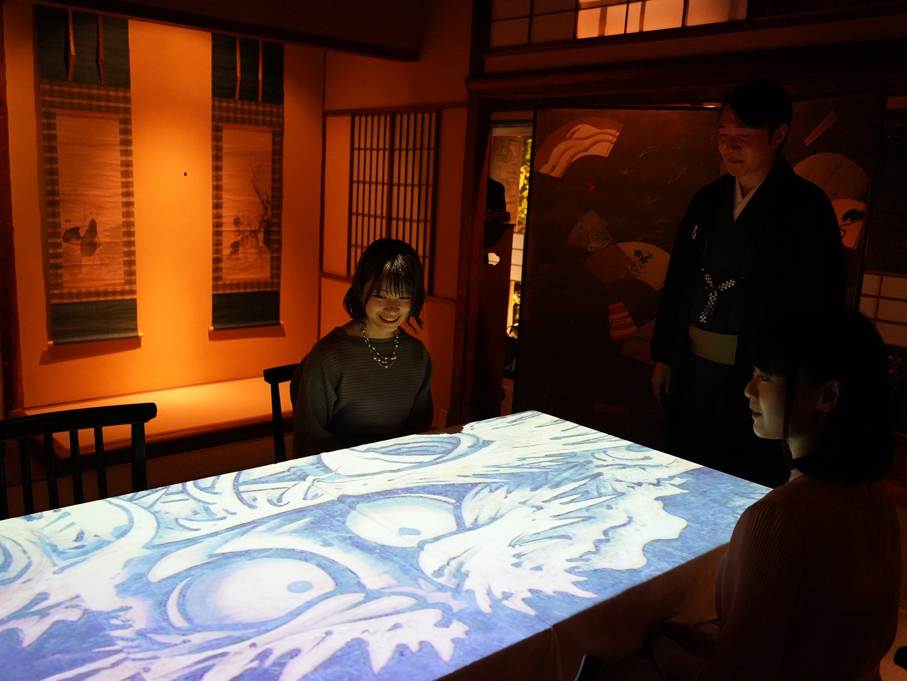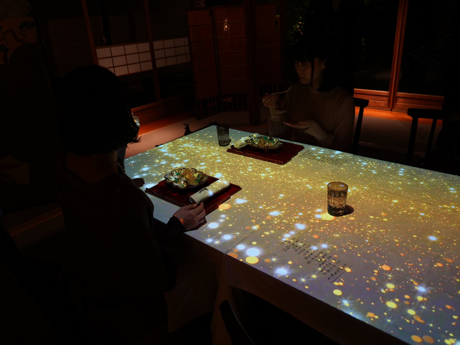 400年の歴史を誇る名古屋最古の料亭・河文で初の試みとなる会席料理とテーブルプロジェクションマッピングを融合させたプログラムです。