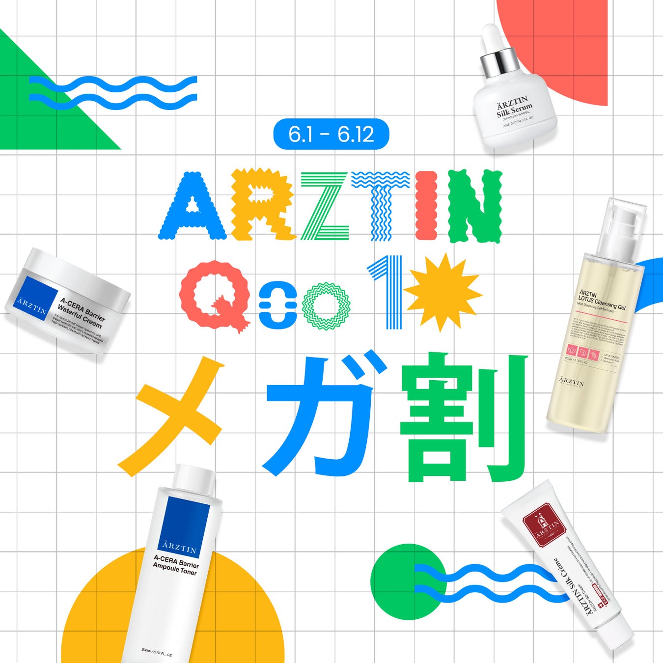 ARZTIN Qoo10公式ショップのメガ割ではシルククリームを含む、 人気アイテムのセットや単品など最大35%OFFの予定。