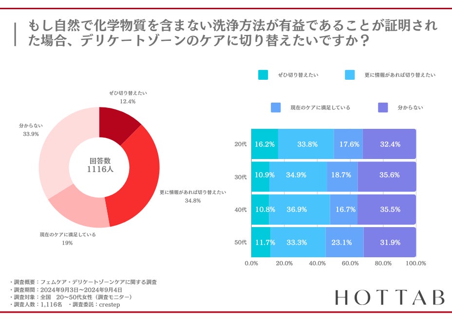 デリケートゾーンのケアに有害であると考えられる化学物質を含まない洗浄方法について、より質の高い情報があれば、現状に満足できていないおよそ80%の方が今後より安心してフェムケアに取り組むことができるのではないでしょうか。